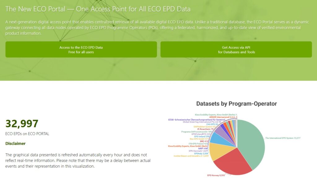 ECO Portal amb 32,997 ECO EPDs registrades es consolida com la major base europea de referència de dades digitals ambientals verificades per una tercera part.